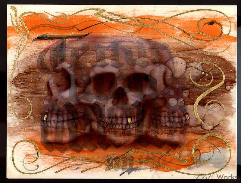 Goldleave,Candys, Airbrush, grinding behind Acrylic 15x30cm, Lowbrow Kustomart black frame